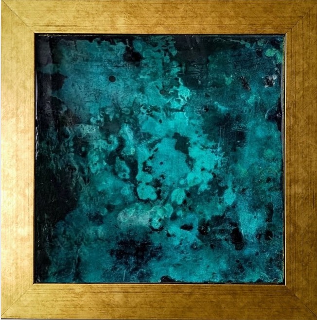 Technique: artwork created using epoxy resin, where rich, saturated pigments form a bold and elegant composition, layered structure and glass-like, almost mirror finish create a striking sense of depth and luminosity, drawing the eye and bringing a refined, modern luxury to any interior.